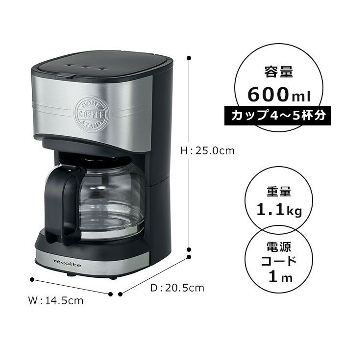 解説 手軽にコーヒースタンド気分が味わえる「recolte(レコルト)ホームコーヒースタンド」は、コーヒー豆とお水をセットし、あとはスイッチを押すだけで自動でドリップコーヒーが抽出できます。